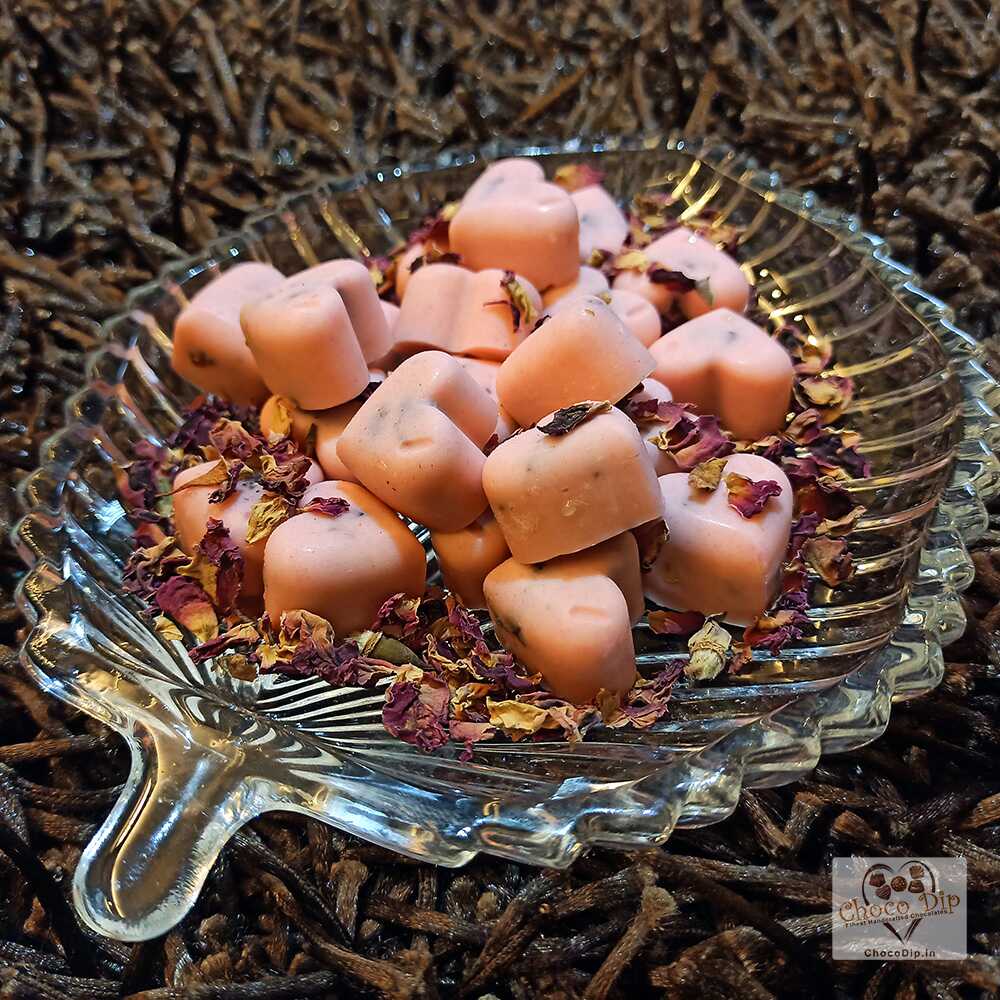 Immerse yourself in the unique and aromatic indulgence of our chocolate infused with the traditional Indian delicacy of gulkand